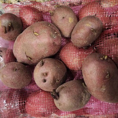 I've stopped doing pickup for yellow potatoes since they're almost always Sprouted. However, I've had better luck with Red potatoes, but not this time. Some already had long sprouts.