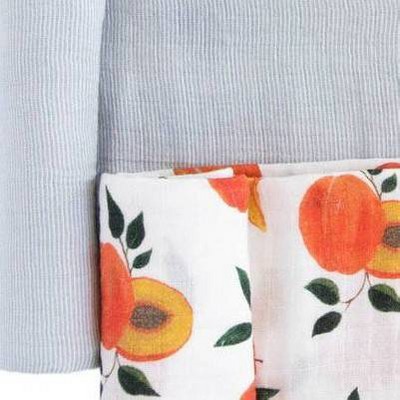 These two swaddles arrived just in time as I am packing up my hospital bag. I am so excited to have these for my little guy. They are even prettier in person. I love the subtle stripes on the blue one and the peaches are too cute! The cotton muslin makes these so soft and they got even softer when I washed them.