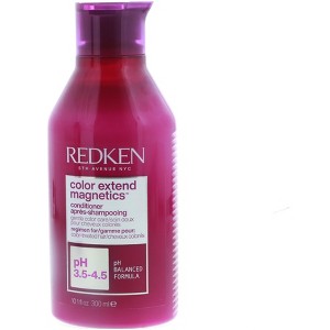 Redken Color Extend Magnetics Conditioner, Color-Protecting Conditioner, 10.1 oz, safeguards color-treated hair with a targeted, strengthening conditioning system that helps seal the cuticle, boost shine, and maintain salon-fresh vibrancy between appointments. Powered by a multi-protein complex that supports the root, core, and tip, it delivers balanced hydration while reinforcing the hair's feel of resilience. The creamy yet lightweight texture detangles instantly, reduces the look of frizz, and promotes smoother, more manageable strands without heaviness. Ideal for daily use after cleansing, it helps minimize fading from washing and heat styling, leaving hair soft, silky, and bright with enhanced reflection and long-lasting color radiance.