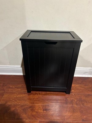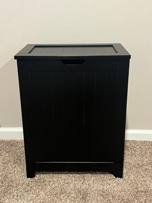 Redmon Country Wainscot Style Clothes Hamper, Contemporary Freestanding Laundry Basket with Lid, 18'' x 11.25'' x 23.25'', Black