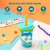 Agree with other reviewers that this broke after a couple of uses - the cup fell from a very short distance onto the counter and the entire outer plastic portion of the cup broke off. The under the sea design is SO cute though! Straw is easy to clean and comes apart into two pieces - top soft part and bottom harder part.