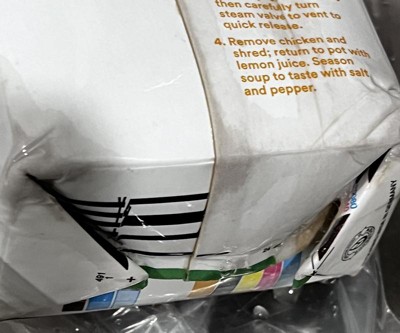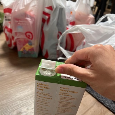 I was mahin chicken noodle soup in the crock pot, and the last thing I had to add was a couple of boxes of chicken broth. I added the first one with no issue, but when I added the second one, something dropped out of it, which looks very moldy. So it ruined the whole pot of soup. The only thing I can think of is that the box before I bought it was not sealed. It used to be on the boxed broth. You would have to break the seal after you took the lid off. Now it happens as you take the lid off, and I don't know if it was already broken or not. But it was disgusting, and now I have to throw out the chicken noodle soup. We will see if Target does anything about this.