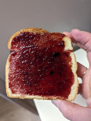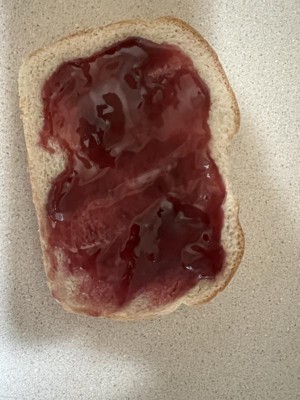 This is a really delicious jelly like spread. The texture is good, it spreads nicely and the flavor is really tasty. Whether on toast or a simple PBJ, it tastes good. I wouldn’t be able to tell it was a store brand.