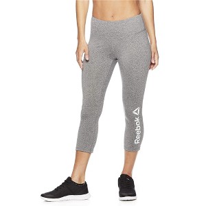 • POLYESTER-SPANDEX BLEND: Composed of 88% polyester and 12% spandex, these Reebok Women's Branded Capri Compression Athletic Pants are designed to give you a secure and flexible fit for your workout routine. The heathered pattern adds a touch of style to these fitness essentials.
