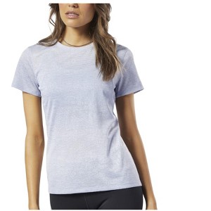But that's not all, darling! The light-weight, opaque fabric means you can move with total freedom and zero distractions. The crew neck and short sleeves might make it look like a basic tee, but don't be fooled—this shirt is a wolf in sheep's clothing. It's engineered to keep you running like a beast while looking like a beauty. The Reebok logo is more than just a decoration; it's a testament to quality, comfort, and style. If you’re ready to bring the heat, then it's time to rock the shirt that can take the heat. Don’t just chase your goals—catch them, in a tee made for winners.