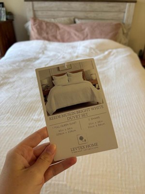 - LEVTEX REEDE MUSLIN CREAM : The Reede Muslin Cream duvet collection is a textured soft muslin. The set consists of a duvet cover and matching pillow case.