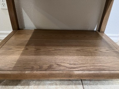 submitted byTargetShopper - 1 year agoA: It's manufactured stone, mostly white with some grey flecks. It's attached with substantial screws using predrilled holes on the underside.