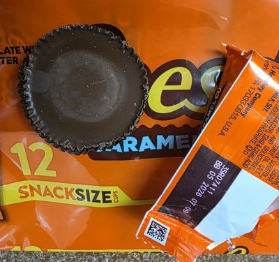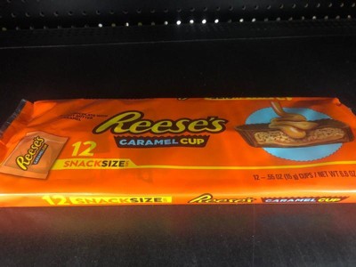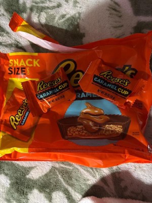- Contains one (1) 9.9-ounce bag of REESE'S Caramel Milk Chocolate Snack Size Peanut Butter Cups Candy