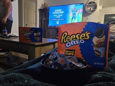 [This review was collected as part of a promotion.] The Reese's oreo miniature cups are the perfect snack for any occasion! The inside is crunchy and you get flavors from both the oreo and reeces peanut butter, and the outside is smooth and chocolatey. These are perfect for parties, halloween, game days, and even just for yourself to enjoy.