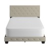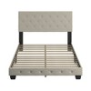 - Features a tufted linen upholstered adjustable headboard to fit mattresses between 8" and 14" thick.