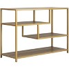 Inspired by bold modern art and architecture, this Reese Geometric Console Table stores and displays objects with depth and dimension. Its walnut and gold liquid finish highlights its clean lines and complements any living room decor.
