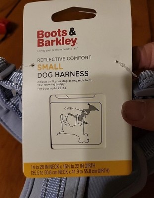 Keep your pet safe while walking during low light conditions with this Reflective + Comfort Adjustable Dog Harness from Boots & Barkley™. This solid lilac comfort dog harness is perfect for daily walking, running, training or any other outdoor adventure. It features a lightweight padded design with wide straps for maximum comfort and control, breathable mesh interior and reflective qualities for visibility in dark, rainy or foggy conditions. The adjustable clip-in clasp closure offers them a sure fit, while the metal D rings allow for easy leash attachment. A perfect accessory for your pet, this harness is suitable for dogs of all ages that weigh up to 10 pounds.