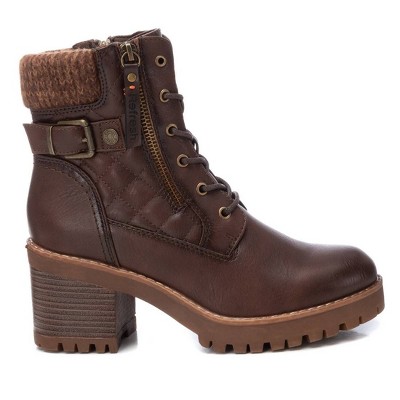 Step into fashion and quality with Xti Boots for women. These stylish boots are the perfect combination of fashion and comfort, making them a must-have in every woman's wardrobe. Whether you're headed to work or a night out with friends, these boots will keep you looking and feeling your best. Take your style to the next level with Xti Shoes! These 2.76 in high booties are the perfect blend of casual and comfort. Trend design that goes well with every outfit. Side zipper closure and lace-up for easy fit. Design with decorative buckle and quilted details. Round toe. Lightweight non-slip rubber sole.