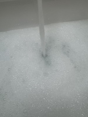 This is a really nice bubble bath. It smells really nice, soft and not overpowering and pleasant. The feels is of course slippery and all and the color is pretty clear. I worked up a froth in the sink and it made more bubbles than I would have ever imagined all from a thimble full of bubble bath.