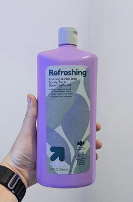 Elevate your bath experience with this Eucalyptus and Spearmint Refreshing Foaming Bubble Bath from up&up™. This foaming bubble bath cleanses and hydrates and has a refreshing formula that contains eucalyptus and spearmint essential oils to help relax your mind, lower stress and soothe your body. Plus, it’s dermatologist tested and contains no parabens, phthalates or sulfates, so you can feel good about using it every day.