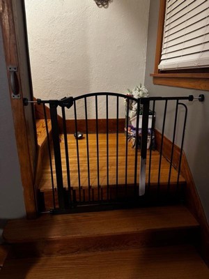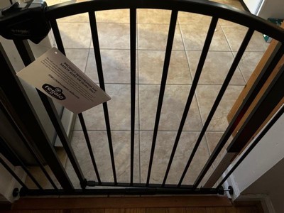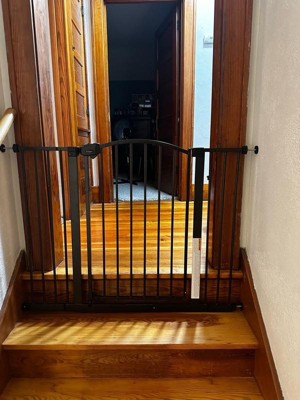 [This review was collected as part of a promotion.] This gate is just what I needed after getting a new puppy! The brass color goes so well with my home and makes it less of an eye sore. I love how it conveniently opens and closes with the latch so there’s no hassle of having to step over.