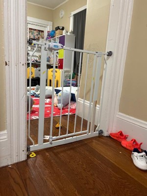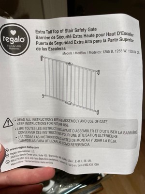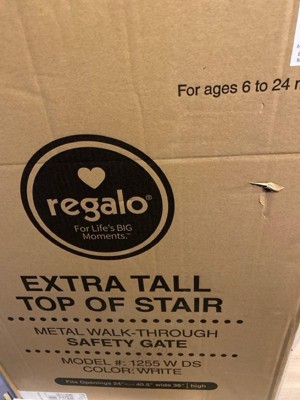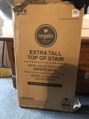 The Regalo White Extra Tall Top of Stairs Baby Gate is a sturdy, convenient gate to protect your little one from stairways. Boasting an all-steel construction the safety gate can accommodate stair openings between 24”-40.5” and stands 36” tall.