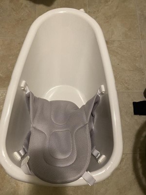 [This review was collected as part of a promotion.] The tub is really nice. The white makes it feel clean and bright. My little one is very small and slides down constantly in the sling. But the sling itself is very nice and I do like it. My biggest complaint and the reason I gave it only the stars is because it doesn't have a drain. I feel like that's a must have for me.