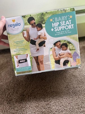 Take stress off your back with the new Regalo Baby Hip Seat + Support. Here to provide you with extra comfort and support, our Baby Hip Seat + Support attaches securely around your waist, minimizing strain on your arms, wrists, and back while you hold your little one.