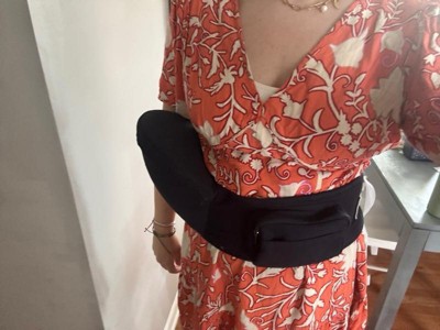 [This review was collected as part of a promotion.] So I'm a big hipped woman since I've had my baby so I'm not back to my original weight leaving me at a size 19/20. If you're over 18, this won't fit unless you move it around your stomach above your hips. However, it still holds pretty strong and helps lower back pain from holding baby on my hip all the time. I'd sacrifice working my core to prevent back pain, haha. It even has a little pocket to hold pacifiers/small toy/phone and an adjustable strap if you're a smaller waist. Doesn't feel cheaply made. I like but I wish it could be adjusted for some plus size ladies.