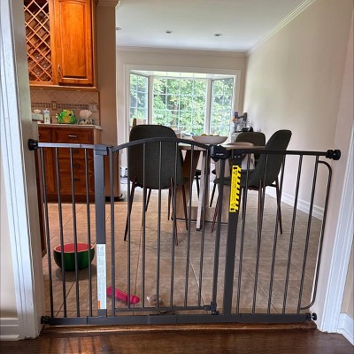 - FIT: Perfect for hallway, doorway and bottom of stairs. Includes 4-inch-wide extension Kit. Gate folds flat for easy storage