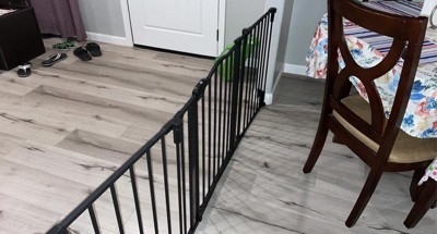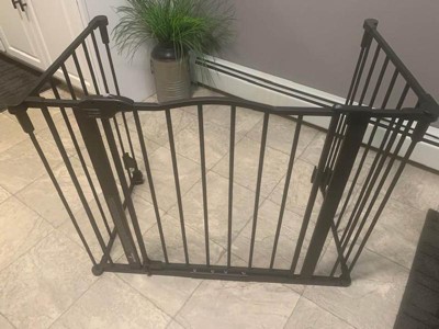 Made of an all-steel construction, the black décor gate can be arranged a variety of ways. Spanning to fit odd shaped openings from 56” up to 74.5” wide.