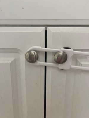 [This review was collected as part of a promotion.] Super easy to use? Nice size so that I can use it for many different needs. This I use primarily on my cupboard underneath my sink to keep my kiddos out of cleaning supplies. Easy to get into for me but they can’t do it so it’s perfect.