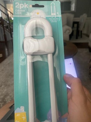 [This review was collected as part of a promotion.] This white cabinet lock is very useful and it gave me peace of mind that my baby will not be opening the cabinet doors. About its size, it seems a little big to me but it doesn't matter. Very easy to use and install.