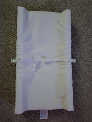 [This review was collected as part of a promotion.] This changing pad is very nice. It is very comfortable . The padding is very thick . It is a great size. It has a safety belt for security. On the back it has rubbery pads To keep it from sliding around. It also can be velcroed down to whatever surface you choose because it came with Velcro Sticky pads that you can put on whatever surface you choose. The material is waterproof and wipeable but also comfortable enough to lay the baby down on directly. When this arrived in the mail, it was folded in half and stuffed in a box and I was concerned that it was going to never lay flat again. But after just one night, it now lays perfectly flat There are no indications that it was ever folded in half. It is made of high-quality materials and assembled well. This is a good quality item and I recommend it.