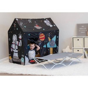 The Regalo My Tent Portable Play Tent is a creative space to play for your toddler. With ample room, it allows for hours of imaginative play. The compact play tent is easy to set up and take down with a convenient carry case for storage. This playful outer space design fits perfectly over our My Cot Portable Toddler Beds for elevated play or a naptime fort.