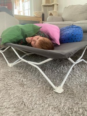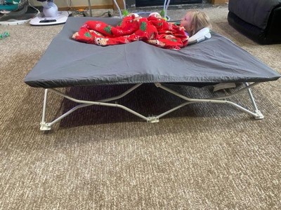[This review was collected as part of a promotion.] This is the perfect size little cot to bring on a trip! It’s easy to pack and bring. You can use it anywhere and it’s sturdy and safe! The kids say it’s comfy!