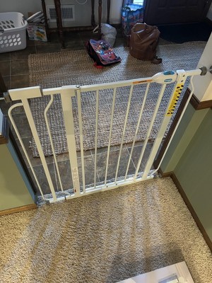 The extra wide baby gate configures to fit openings between 29”-41.5” giving you a variety of options for door and hallway set ups. To make gate installation a breeze, pressure mount the gate with the included rubberized tension knobs or use the included hardware to attach the gate to your wall.