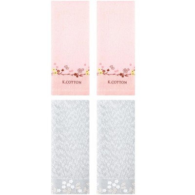 REGALWOVEN 100% Cotton Floral Embroidered Soft Absorbent Decorative Hand Towel 14 x 28 Inch Grey/Pink 14" x 28"/15" x 30"