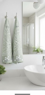 [This review was collected as part of a promotion.] These hand towels are a delightful addition to any bathroom, instantly elevating the space from ordinary to elegant. I chose the soft green floral pattern, and the color palette is incredibly soothing—a fresh, light sage speckled with white, perfectly complemented by a solid sage trim at the bottom. Aesthetic and Design: The design is the real standout. The towels feature a beautiful, subtle texture across the main body, suggesting a high-quality weave. The most charming detail is the embroidered border: small, white, five-petal flowers stitched neatly along the bottom edge. This embroidery adds a tactile and sophisticated touch that feels less like a simple towel and more like a decorative accessory. Hung on the simple chrome hooks above the marble vanity, they drape perfectly, maintaining their shape and showcasing the design beautifully. Quality and Texture: While I can't feel them through the image, the terry cloth loop structure appears plush and dense, which usually translates to excellent absorbency and a wonderfully soft feel against the skin. They look like they would hold up well to regular washing without losing their vibrant color or structural integrity. Conclusion: If you're looking to bring a touch of springtime freshness and understated luxury into your bathroom, these towels are an excellent choice. They harmonize beautifully with both modern (like the simple metal hooks and clean white sink) and more traditional décor. They are truly the finishing piece that ties the entire vanity area together.