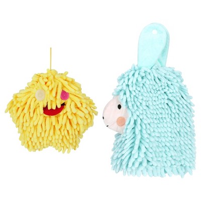 REGALWOVEN 2 Packs Chenille Hand Towel Flower and Cute Cartoon Hanging Hand Towel for Bathroom 6" x 15"/7" x 7" Yellow