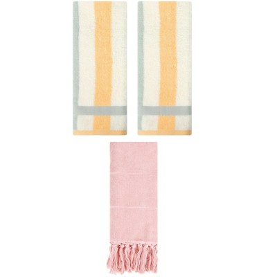 REGALWOVEN 2 Packs Cotton Absorbent Soft Decorative Bathroom Hand Towel for Kitchen Pink/Blue Orange 14" x 30"/13" x 29"