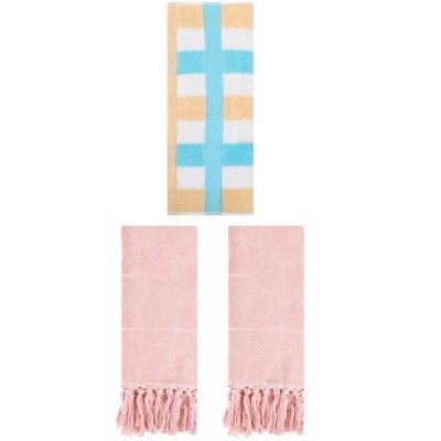 REGALWOVEN 2 Packs Cotton Absorbent Soft Decorative Bathroom Hand Towel for Kitchen Pink/Blue Yellow 14" x 30"/13" x 29"