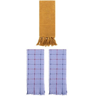 REGALWOVEN 2 Packs Cotton Absorbent Soft Decorative Bathroom Hand Towel for Kitchen Yellow/Blue 14" x 30"/13" x 29"