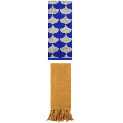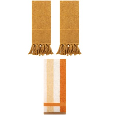 REGALWOVEN 2 Packs Cotton Absorbent Soft Decorative Bathroom Hand Towel for Kitchen Yellow/Brown Yellow 14" x 30"/13" x 29"