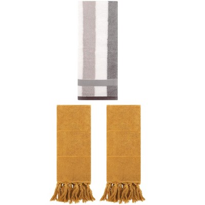 REGALWOVEN 2 Packs Cotton Absorbent Soft Decorative Bathroom Hand Towel for Kitchen Yellow/Grey 14" x 30"/13" x 29"