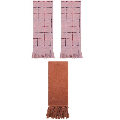 REGALWOVEN 2 Packs Cotton Geometric and Solid Absorbent Soft Hand Towel for Bathroom Kitchen