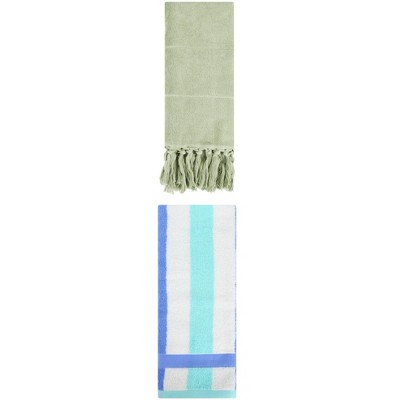 REGALWOVEN 2 Packs Cotton Geometric and Solid Absorbent Soft Hand Towel for Bathroom Kitchen