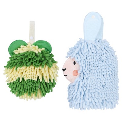 REGALWOVEN 2 Packs Fluffy Chenille Rabbit Shape Cute Soft Absorbent Hanging Ball Hand Towels 7" x 7"