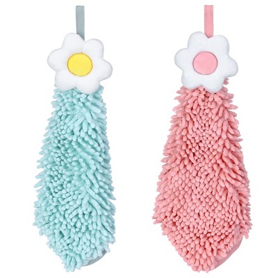 REGALWOVEN 2 Packs Soft Absorbent Flower Pattern Chenille Hand Towel with Loop 6" x 15"/7" x 7"