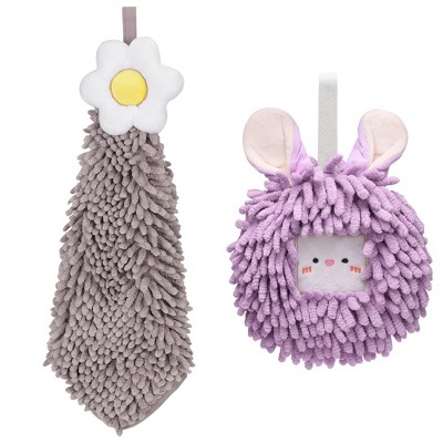 REGALWOVEN 2 Packs Soft Absorbent Flower Pattern Chenille Hand Towel with Loop 6" x 15"/7" x 7"