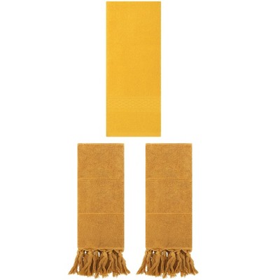 REGALWOVEN 2 Packs Solid Textured and Tassels Soft Absorbent Decorative Hand Towel Yellow 14" x 30"/13" x 30"