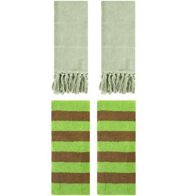 REGALWOVEN 2 Packs Striped and Tassels Hand Towels for Bathroom 14" x 30" Green/Blue
