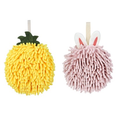 REGALWOVEN 2 Pcs Comfortable Soft Absorbent Chenille Ball Fuzzy Hand Towel for Home Decor Yellow/Blue 6" x 6"/7" x 7"