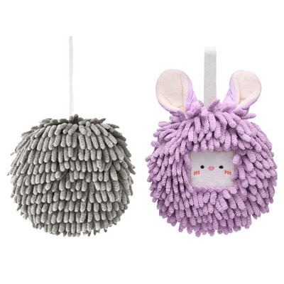 - 2 pcs hand towels, solid chenille ball hand towels: 1pcs, 6" x 6", 100% polyester; cute animal hand towels: 1pcs, 7" x 7", 90% polyester,10% nylon