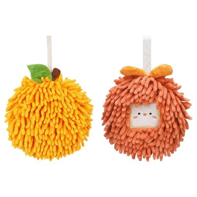 REGALWOVEN 2 Pcs Cute Comfortable Soft Absorbent Chenille Ball Fuzzy Hand Towel Orange 6" x 6"/7" x 7"
